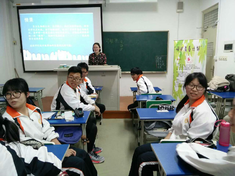 2016年4月14日下午,阳光中心虹口工作站的青少年社工来受邀来到上海高级技工学校,为同学们上一堂关于青春期责任的讲座。