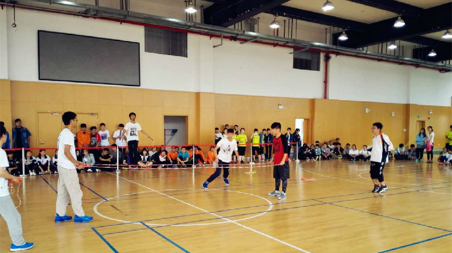 14日上午,在两人对踢毽子项目中来自14DKZG1-3班毛润智和15JW2-4班王玮平同学,配合默契,2分钟踢出了89对的好成绩,激起了后续队员的斗志。车轮跳的四位选手15JDZG1-3班金佳辉和苏欣逸组合,沉着冷静坚持跳完1分钟的比赛,跳出了228个的好成绩,发挥超常。来自14DKZG1-3班12位长绳队选手和于强老师师生互动、团结协作,再接再厉,3分钟跳出了368个的好成绩,发挥出了正常的水平。短绳的两位选手更是令人敬佩,15JDZG1-3班周杰同学和15DKZG1-3班的谈嘉辉,以2分钟跳出387个和377个短绳的好成绩;女生组来自15SKSR2-4班的陆诗韵同学也跳出了309的好成绩。 对于去年新增项目交互速度赛和交互表演赛,今年兄弟学校水平明显比去年高,来自15JW2-4班薛奕柠、倪勇、盛宇豪、王玮平和15DKZG1-3班谈家辉、孙新宇和15SK1-3班杨俊杰同学能够顶住压力、积极调整心态,发挥出了不错的水平。