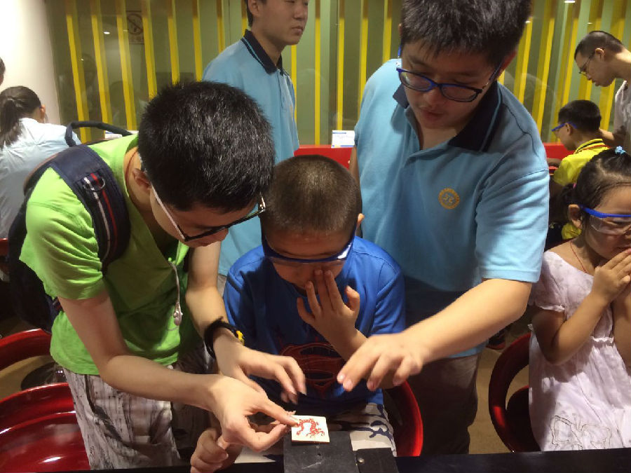 暑期里共14次志愿者活动使大家有机会接触到木工制品并学习了3D打印机的使用方法,让知识得到了丰盈。这里的环境虽有些嘈杂,空气中也弥漫着木屑,可是并没有减少我们做志愿者的热情,坚持帮助小朋友们用小机床做出一个个工艺品,时刻注意保护小朋友的安全。看到小朋友们开心满足的笑脸,志愿者们觉得做的一切都是值得的。