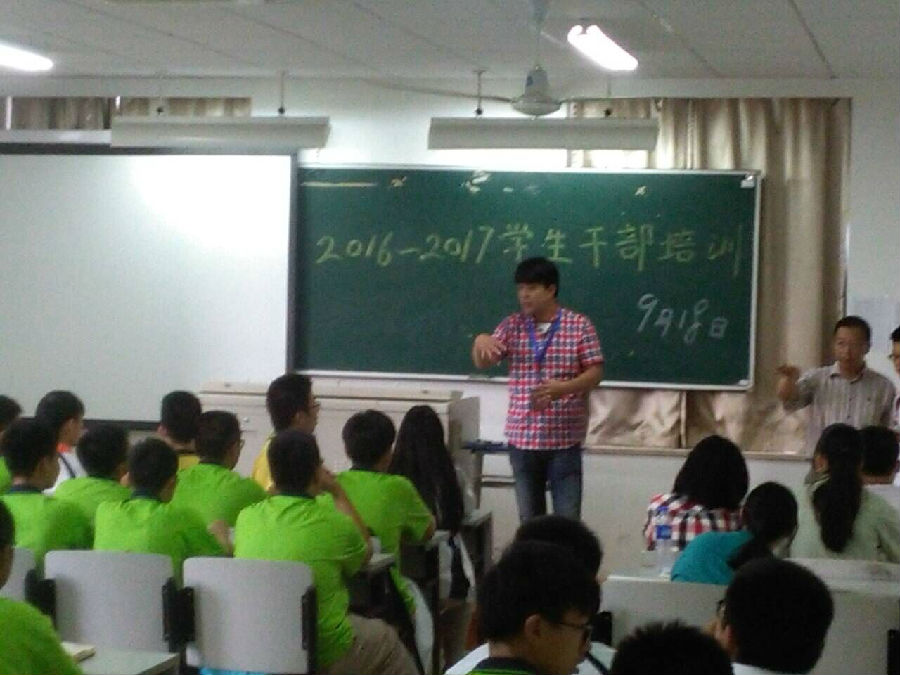 9月18日,于教学楼211教室展开了2016届班干部培训会议,本次会议由学生科副科长徐伟文、易班辅导员于强、15届学生会干部以及16届各班学生干部参与。