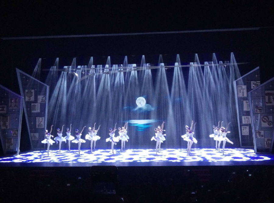 第一个节目便是气势宣扬的《鼓舞》,全场都瞬间沸腾了。接下来便是颁奖活动了,市区级领导干部纷纷上台为学生颁奖。之后便是激情四射的武术表演《武魂》.非常好的展现了中华儿女的豪迈气概。在阵阵掌声中我们迎来了下一个节目——由上海市戏剧学院附属舞蹈学校带来的《天鹅湖》选段。俗话说的芭蕾舞演员是在靠脚尖吃饭,看着她们曼妙的舞步,娴熟的跳跃。竟不知她们为此付出多少汗水。