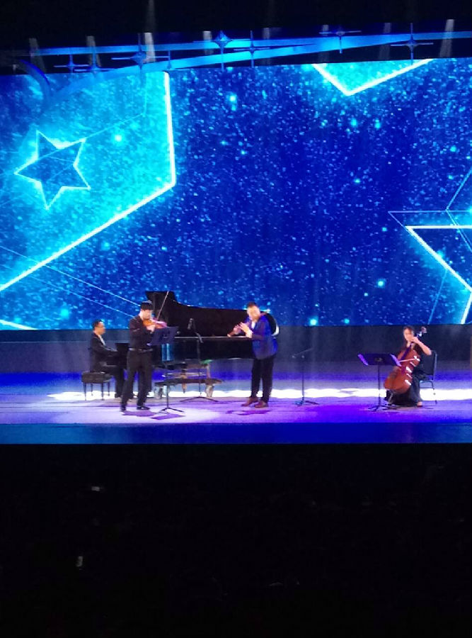 接下来便是欣赏高雅艺术,由音乐学院的老师带来,把整个演出推向了高潮,最后带来的是大合唱,就这样演出在欢笑声中结束。