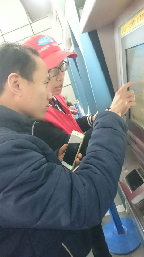 早上七点四十五分,志愿者们便已抵达上海火车站,披上红马甲,戴上红帽子。在负责人的带领下前往各自工作的岗位,各司其职地帮助旅客们购票、取票、换票和改签等等步骤。虽然有时会犯些小错误,也有不少外国旅客和听力不便的老年旅客给志愿者们的工作带来了不小难度,但他们仍然在铁路工作人员的帮助下,齐心协力,尽职尽责地帮助了一位又一位旅客。