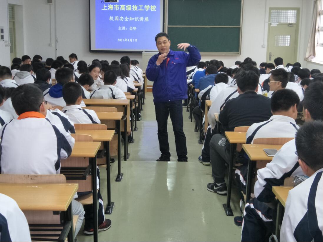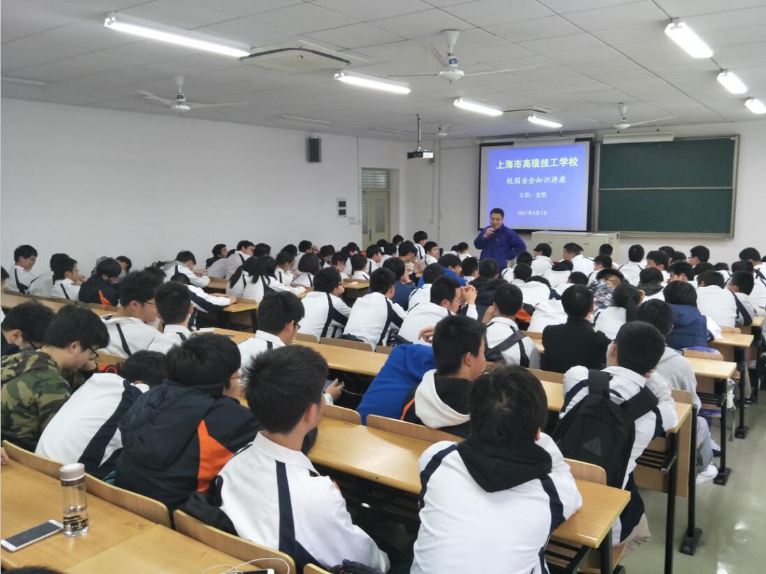 于我校2017年4月7日,在我校教学楼509教室展开了关于校园安全的讲座,组织本次讲座的是上海市高级技工学生科科长徐伟文老师,易班指导老师于强老师以及校保卫科副科长金坚老师。