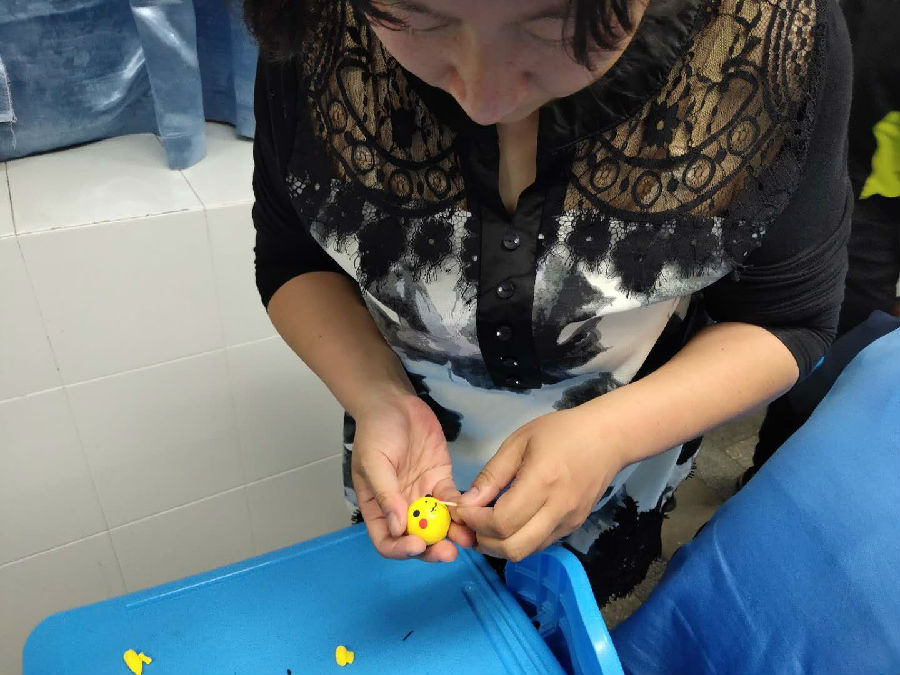 活动开始了,同学们经过了老师的一番讲述,对超轻黏土大致的了解番。老师为每位同学下发了超轻黏土和工具,“那今天我们就用超轻黏土来做一个皮卡丘吧。”同学们拿起手中的超轻黏土,已经开始揉搓起来,每个人都跃跃欲试起来。“首先我们将发下来的黄色超轻黏土,分成6份,其中一份稍微大点,将稍微大点的部分作为身体,另一份作为头部,其余3份,分别用刻刀分成2份,来作为他的脚、手和耳朵,当然它的尾巴必不可少。”同学们用一双双巧手,将老师讲的步骤一步步完成。