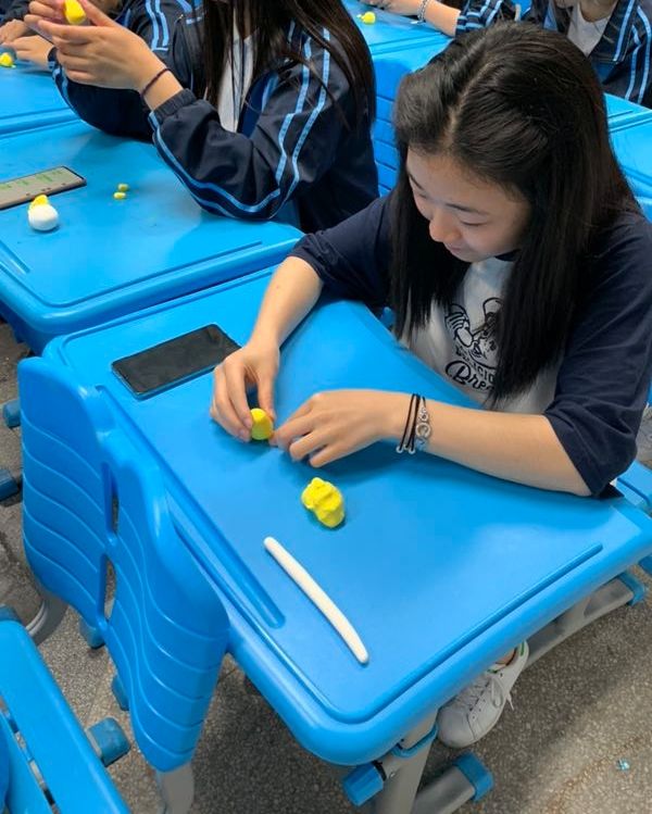 活动开始前,老师拿出她做完的作品,在我们面前展示了一下,同学们一眼就认出,原来是皮卡丘,相信看过《神奇宝贝》(原名:《精灵宝可梦》)和最近很火的电影《大侦探皮卡丘》的人,都知道这一萌物吧—皮卡丘。“大家都知道这个是什么吧,皮卡丘,那大家知道我这个是由什么做出来的吗?”老师问道。同学们马上抢答到:“超轻黏土。”“那你们知道超轻黏土和面塑的区别?”此时的同学们,对这问题无从下手,不知所措。老师面带笑容的解释道:“面塑是中国民间工艺品,它是我国的非物质文化遗产,它用面粉、糯米粉为主要原料,再加上色彩,石蜡、蜂蜜等成分,经过防裂防霉的处理,制成柔软的各色面团,和我们今天所用的超轻黏土很类似,超轻黏土是由高分子材料发泡粉进行发泡,再与聚乙醇、交联剂、甘油、颜料等材料按照一定的比例物理混合制成,超轻黏土制作出来的东西和面塑很相像。”