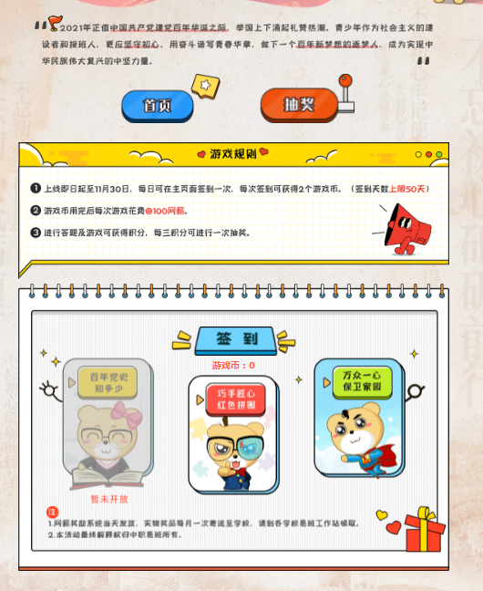 市级易班活动——巧手匠心 红色拼图 每天签到有2次机会参与小游戏 一次可能有点难度,但熟悉后,熟能生巧噢,同学们,一起来试试吧! 到本月底!3个积分有抽奖机会:) http://zz.yiban.cn/topic/2021/welcomenew