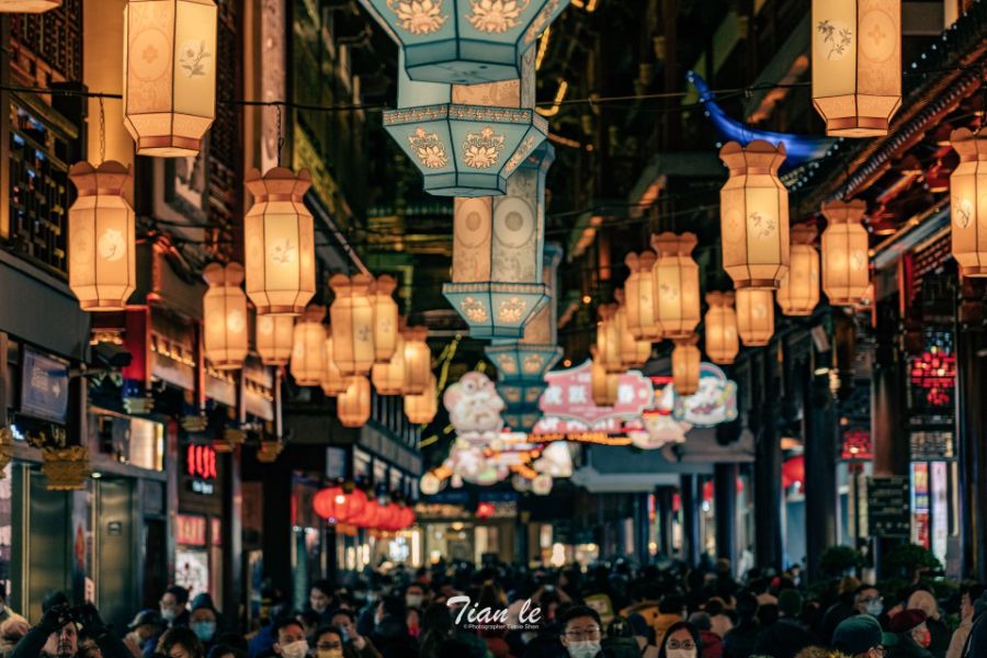 热闹已久的灯会,经过前几天的阴雨绵绵之后,我的这天人潮大军汹涌而至,整个豫园人山人海,红旗招展,灯笼高挂,校场路上一整条美食玩乐集市,豫园里各种小吃香味飘散,一路走走停停走到哪吃到哪的感觉真好~