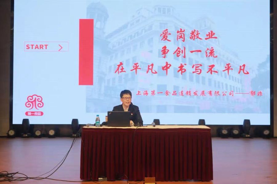 为进一步深入贯彻落实党的二十大精神,大力弘扬劳模精神、劳动精神、工匠精神,在中职校园里播撒热爱劳动的种子,党的二十大代表、全国劳动模范、光明食品集团上海第一食品连锁发展有限公司南京东路旗舰店“壹依壹品”“一盒上海”专柜柜长郁非老师来到商旅校园,在浦东大礼堂做了精彩的分享,报告的主题是:爱岗敬业争创一流一在平凡中书写不平凡。浦江两岸二个校区同步学习。郁非老师从三个维度讲述了自己在工作中的成长与收获。