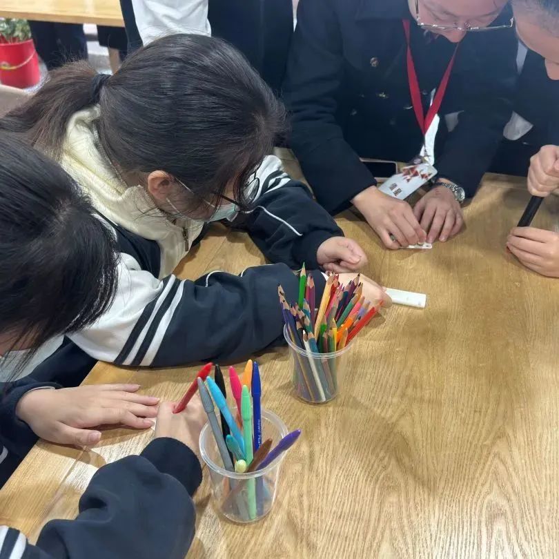 由陆辰妍、何安琪和陆佳馨三位同学邀请来参观的各位同学,画作他们心中的玫瑰。在绘画的过程中,每个同学都富有想象力,大家都十分投入,不断在纸上勾勒自己脑海中属于自己的那朵玫瑰,并和好友交流分享。