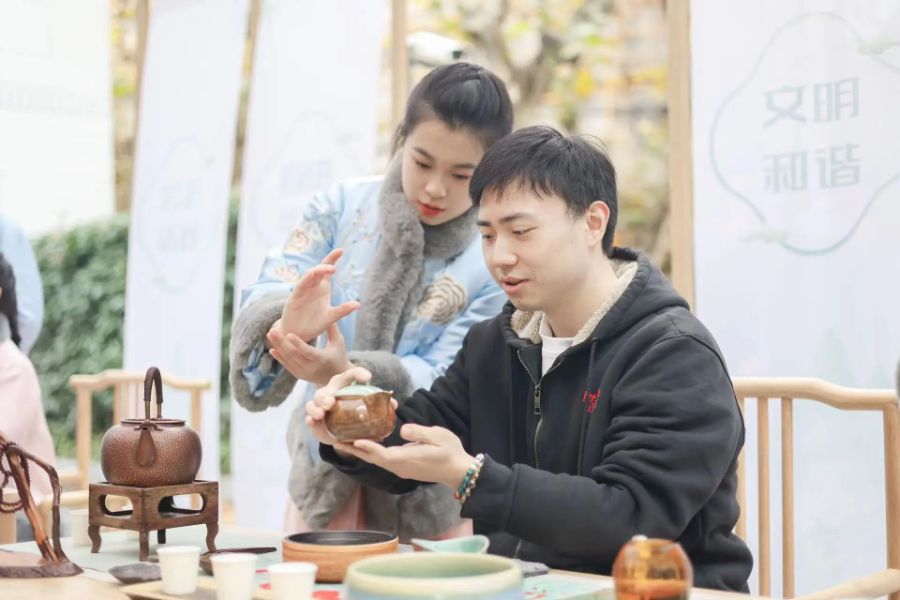 这次活动吸引了附近工作的都市白领前来体验,茶艺社团成员们精心准备了来自福建的漳平水仙、中国台湾的冻顶乌龙、东方美人三款乌龙茶,向大家推广茶的冲泡、茶的品尝、茶的知识、茶的礼仪;古琴社团成员现场为大家演奏古琴。大家在悠悠琴声中弘扬中华优秀传统文化,助力丰富市民修身活动。