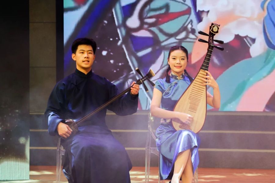 评弹社团带来的《赋得古草原送别》,舞蹈社团学生跳起欢快的傣族群舞《小卜少赶摆》,古琴社团一曲《阳关三叠》琴音悠远,让全场师生情不自禁沉浸在美的体验中,感受浓郁的中国情中国味。