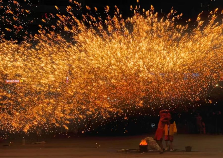 “铁水打花”又叫打铁花,是流传于豫晋地区民间一种独特的花会活动形式,被视为一种古老的烟火。一般在正月十四、十五、十六的晚上即每年的元宵节前后进行表演,以祈求国泰民安、五谷丰登,亦有祥和喜庆之意。