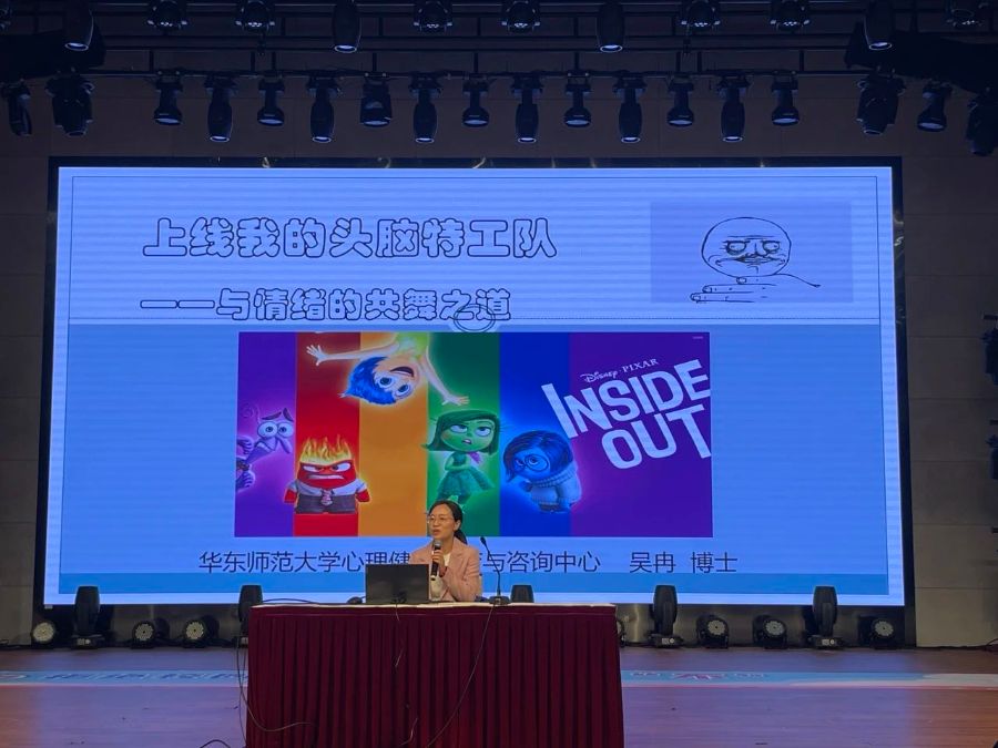 2024年4月1日,华东师范大学心理健康教育与咨询中心副主任吴冉,在浦东校区大礼堂为同学们开展了一堂生动有趣的情绪教育大课。浦东、浦西校区全体师生同步收看。
