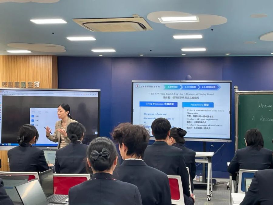 课后,学生们反馈,AI改稿帮助他们更有效地发现语法、拼写等问题,提升了写作能力。赵慧老师分享了教学设计思路。听课教师一致认为课程设计新颖,AI助力提高了教学效率和质量。奚小英老师高度评价了本节课的数字化教学切入点,认为其紧密围绕智能餐饮管理专业职业素养要求,体现了旅游英语应用文写作课程与专业的融合,同时以传播中国美食文化和守正创新的视角在润物细无声中实现了知识传授与价值引领相结合。