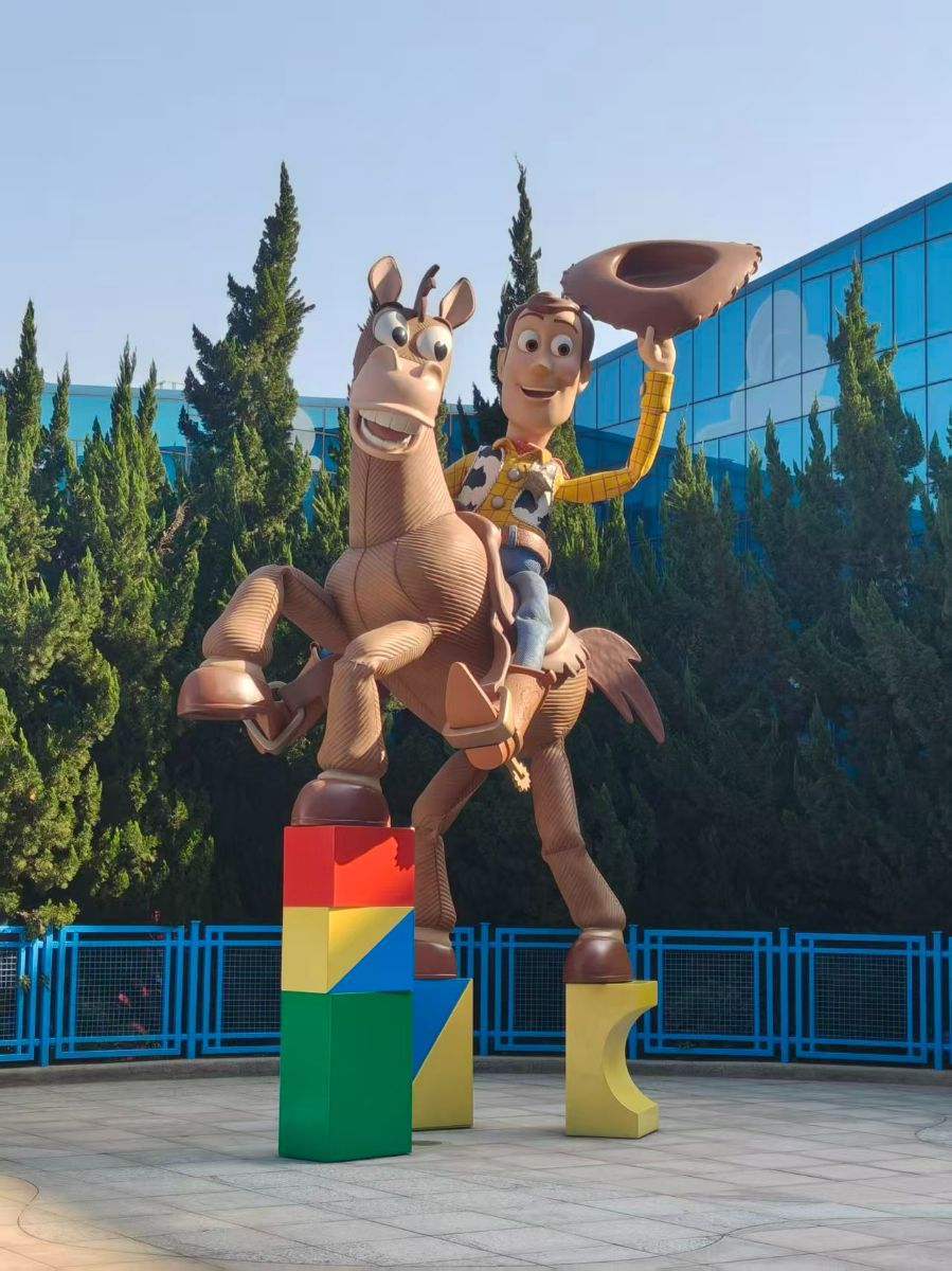踏入迪士尼玩具总动员酒店,瞬间就被满满的童趣包裹住了。大堂里胡迪骑着红心马的雕塑格外醒目,牛仔的爽朗笑容仿佛在热情招呼来客,抬手挥帽的模样鲜活得像从动画里跳出来一般。转角处巴斯光年的巨幅壁画充满动感,太空骑警的无畏姿态让人忍不住驻足惊叹。就连地面上带着星星标志的无穷大标志,都藏着玩具总动员的小彩蛋,细节处满是巧思。身处其中,就像闯进了安迪的玩具箱,童年的美好幻想一一成真,每一步探索都有惊喜,这份沉浸式的快乐,这次参观我学到了很多,真的让我舍不得离开。