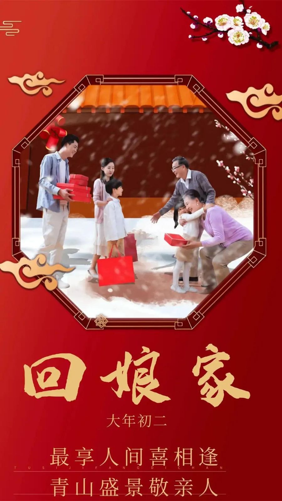 • 正月初二:回娘家:出嫁的女儿会携夫婿回娘家,俗称迎婿日。女儿要携带一些礼品和红包,分给娘家的小孩,并且在娘家吃午饭,但要在晚饭前赶回婆家。