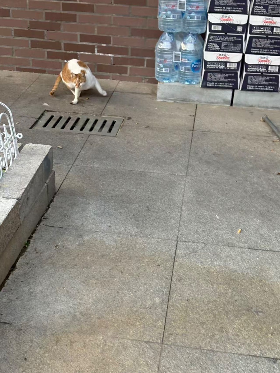 它胖乎乎的,像个毛茸茸的南瓜,身上的橘色条纹深浅交错,阳光下泛着暖融融的光。最惹眼的是那对眼睛,圆溜溜的,像两颗琥珀色的玻璃珠,每次我去买水,它都懒洋洋地抬眼看看我,然后“喵”一声,算是打过招呼了。