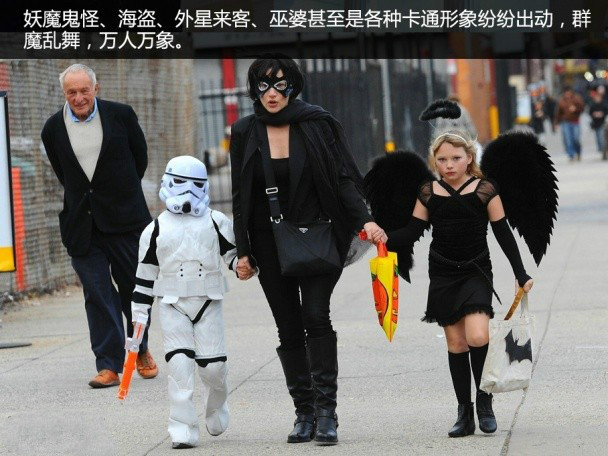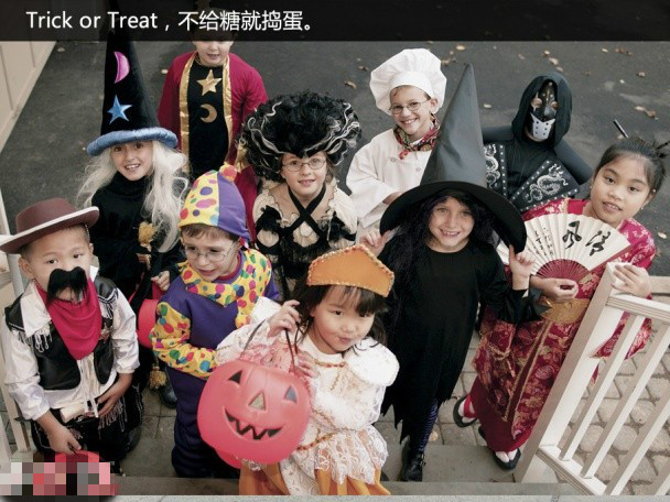 如果你还认为蒙个白床单再戳俩窟窿就可以扮鬼吓人,那你就弱爆了。无论大人小孩,在这个节日里都可以卖萌、扮酷、耍宝无下限,怎么穿都可以。在学校里,孩子们还会制作奇装异服,并选出哪一件作品最新颖、最恐怖或是整体效果最佳。
