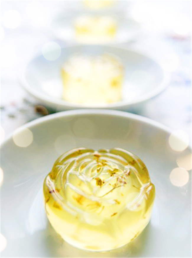 秋天是食桂的好时节,以糯米、糖、蜜桂花做出的糖桂花已有三百多年历史。满地铺桂的季节,一壶浊酒,一盘点心,月下访香,意境不会比唱着法颂的咖啡店差吧~