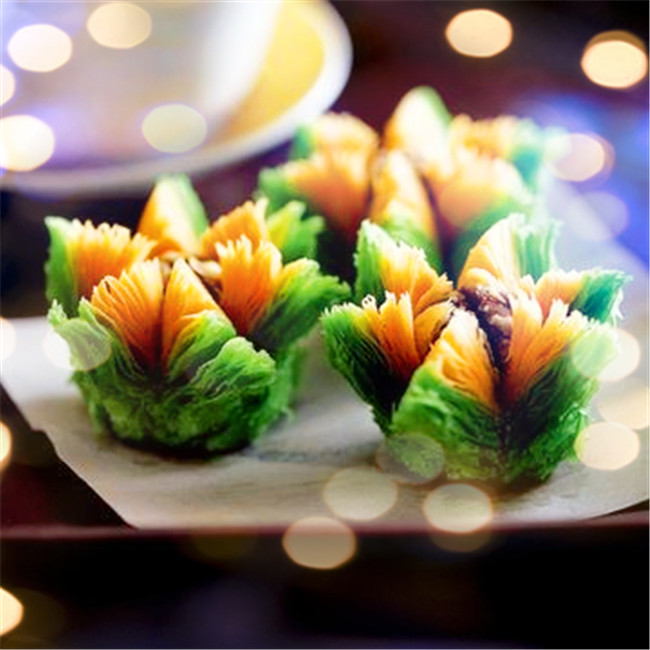 杭州名小吃,用油酥面制成的荷花酥,食之松酥香甜,别有风味。
