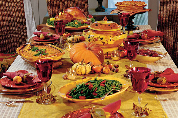 玉米面包,英国奶酪派,鹿肉,鸭和鹅,野生火鸡,大蒜和洋葱,南瓜布丁,印地安布丁,沙拉。