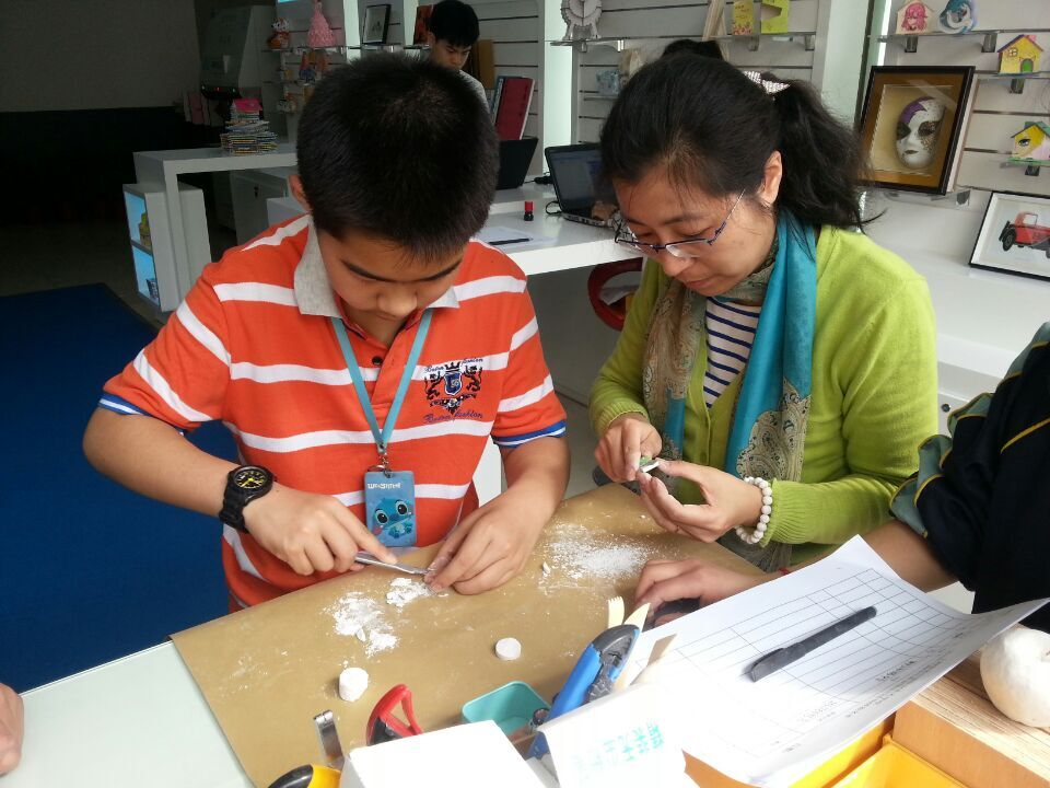 在老师的指导下,他拿起小刀,模仿着作品,全神贯注的进行雕刻。