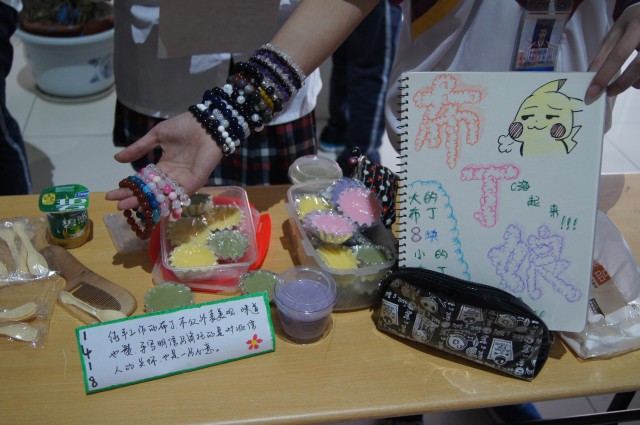 各位同学,大家好。5月4日、5月5日,我校团委分别在操场、光华楼大厅举行了两场以“文化传承,科技创新。”为主题的“I-Mart 创意集市”。很多班级的同学都非常积极踊跃地参与到了其中,并且大胆地发挥了自己的想象。现在让我们来一次“博览会”,评评最受欢迎的创意作品吧! (下面都会有照片以及介绍,请大家仔细评审~部分班级的照片将会陆续补上哦)